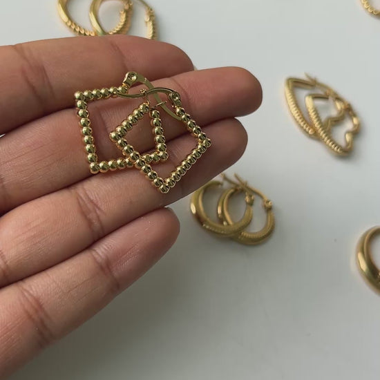 Crafted with a unique squary shape, these Anti Tarnish Hoop Earrings provide an eye-catching touch to any outfit. The anti-tarnish feature ensures lasting beauty and shine, making them a reliable and stylish accessory. Keep your look polished with these bubbly, scientific and objective earrings.