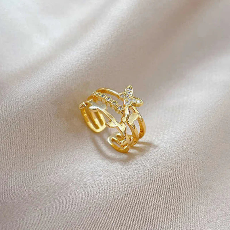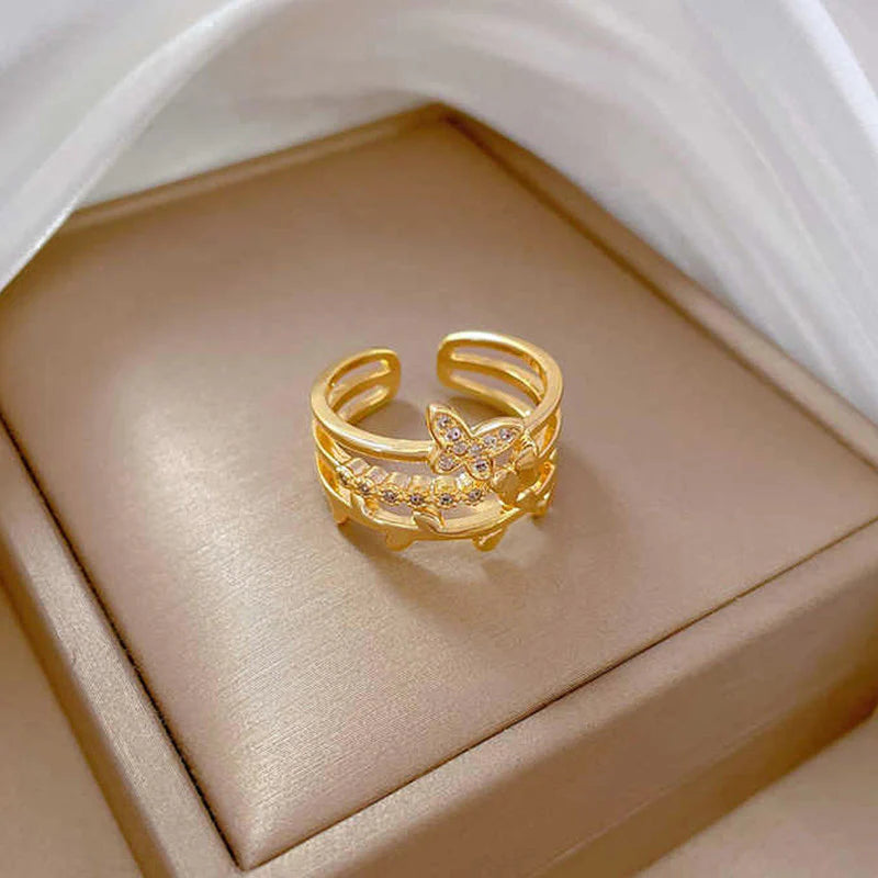 Gold Plated Anti Tarnish Stainless Steel Butterfly Themed Adjustable Finger Ring