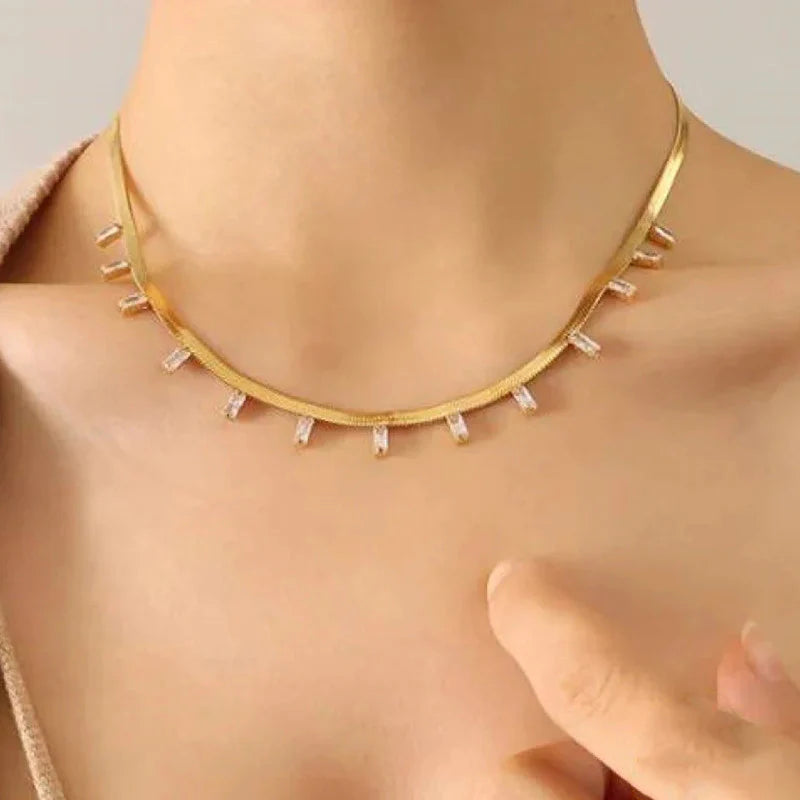 Premium Anti Tarnish Stainless Steel Jewellery for Everyday - Snake Chain Gold Stone Studded Necklace